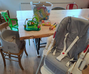 chaise, baignoire bébé, table à